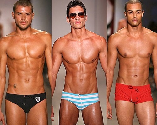 Фасон также бывает разным – от ультракоротких плавок до длинных плавательных шортов. Эксперты в моде считают и первый, и второй вариант крайностями. Короткие плавки смотрятся вульгарно, а длинные – по-пуритански.