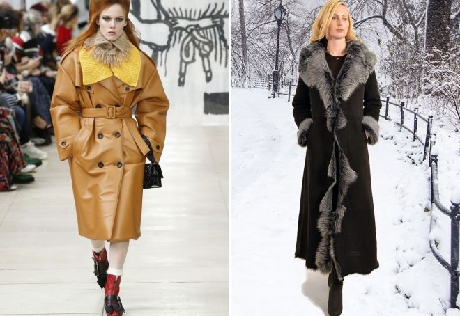 В тренде – дубленки, выполненные из овечьей шкуры с большим воротником.