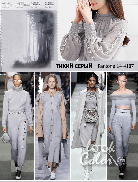 Осень/Зима 2018-2019 имеет оттенок очень светлого и сдержанного серого цвета, названного Институтом PANTONE Quiet Grey .