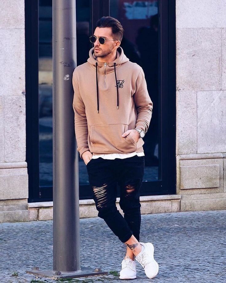 Вот образ мужчины с низкими белыми кроссовками, модным пальто и джинсами-стрейчами не оторвет взгляд ни одна девушка.