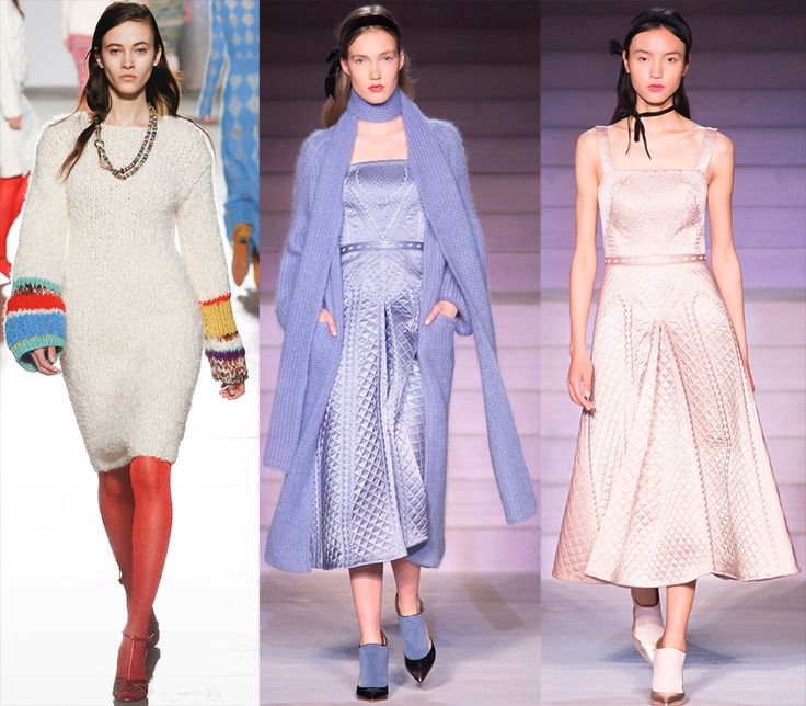 Что касается тканей и фактур, то в этом модном сезоне популярны модные платья из кожи, бархата, атласа, шифона, украшенные кружевом и мехом, драпировкой, воланами и рюшами.