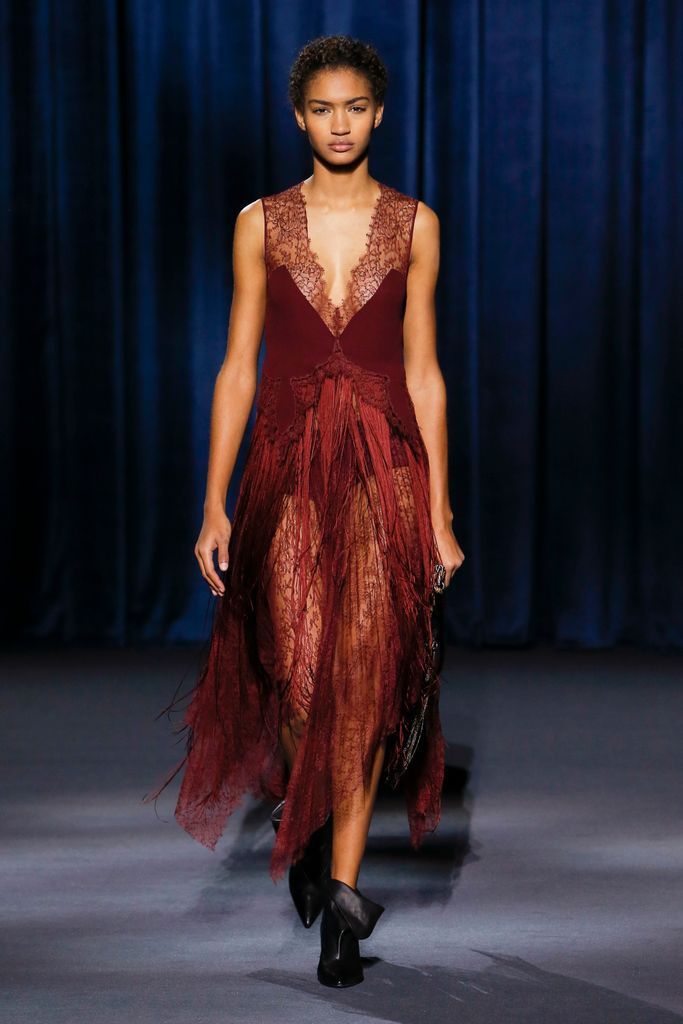 Уже несколько сезонов бахрома не покидает мировые подиумы. Она везде – на куртках, сумках, купальниках, обуви и, конечно же, на модных женских платьях. Dion Lee, Loeve, Prabal Gurung решили разместить ее по краю асимметричного подола, а вы можете придумать свой, возможно, более оригинальный вариант.