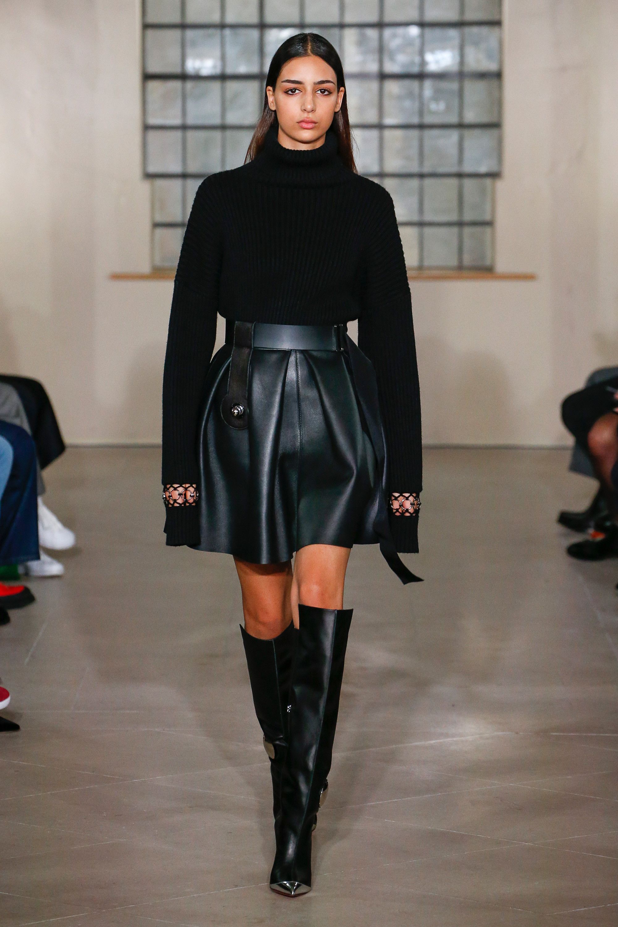Кожаные юбки остаются на лидирующих позициях. Дизайнеры сделали ставку на необычность фасонов.