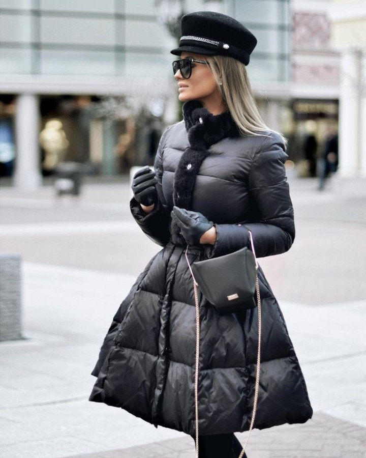Не менее элегантно и красиво выглядят модные женские пуховики снизу расклешенные, такие модели пуховиков часто называют платьем.