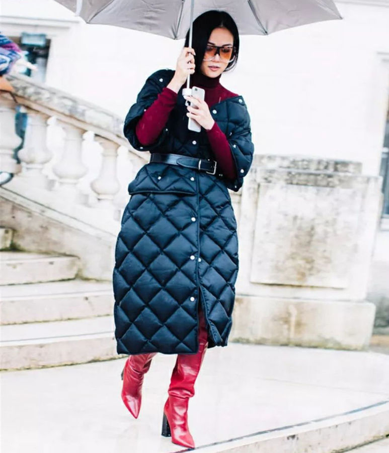 Еще один вариант, чтобы не замерзнуть в любом суровом климате — это длинные пуховики похожие на пуховое одеяло. Спортивные и минималистичные модели длинных пуховиков носите с одеждой в стиле кэжуал и даже более гламурными образами.