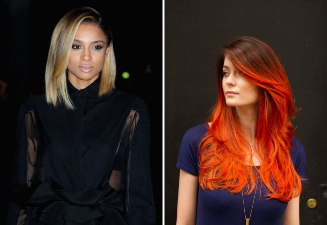 Для мелирования хорошим вариантом станет сочетание карамельного с ярко-рыжим. Также эта комбинация подходит для таких стильных техник окрашивания, как омбре и сомбре.