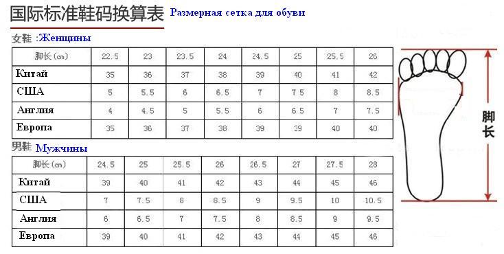 | EUR (европейский) | 34 | 35 | 36 | 37 | 38 | 39 | 40 | 41 | 42 | ||
