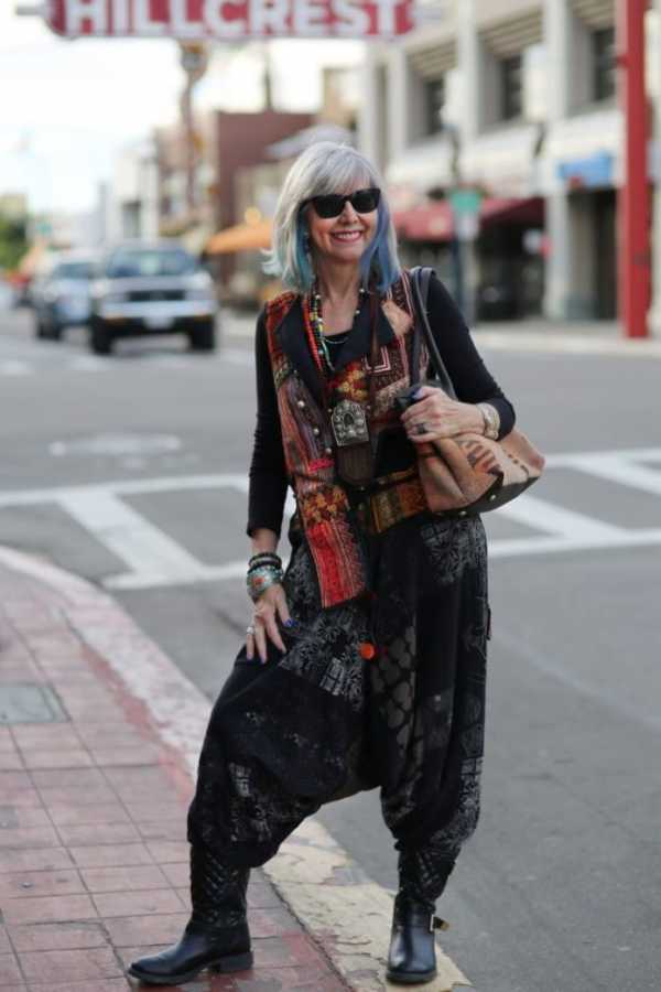 - Разгильдяйскому стилю – нет. Вряд ли в каком-то модном журнале или профиле представительницы фешн-бомонда в соцсетях можно увидеть фото красивой женщины после 45 лет в кожаной косухе с остроконечными шипами, рваной майке, колготках в сетку и стилизованных кожаных берцах с железными клепками.