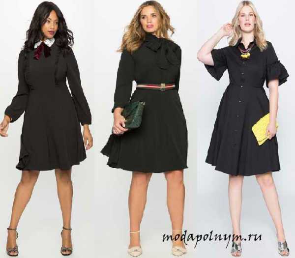 Юбки и платья делают образ более женственным. Правильно подобранная длина помогает скрыть полноту ног. Минимальное количество юбок в базовом гардеробе – 2 штуки. Они должны обладать длиной до колена. Цвета желательно выбирать нейтральные – серый, темно-синий, бежевый. Неизменной классикой считается юбка черного цвета.