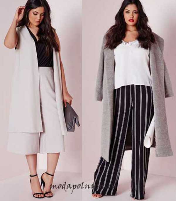 Кардиганы большого размера разных фактур, с пуговицами или без, с короткими или длинным рукавами, длинные или чуть удлиненные, а также пончо, жилеты помогут сделать гардероб современным.