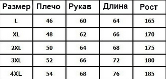 | РАЗМЕРЫ | S | M | L | XL | 2XL | 3XL | 4XL | 5XL | ||