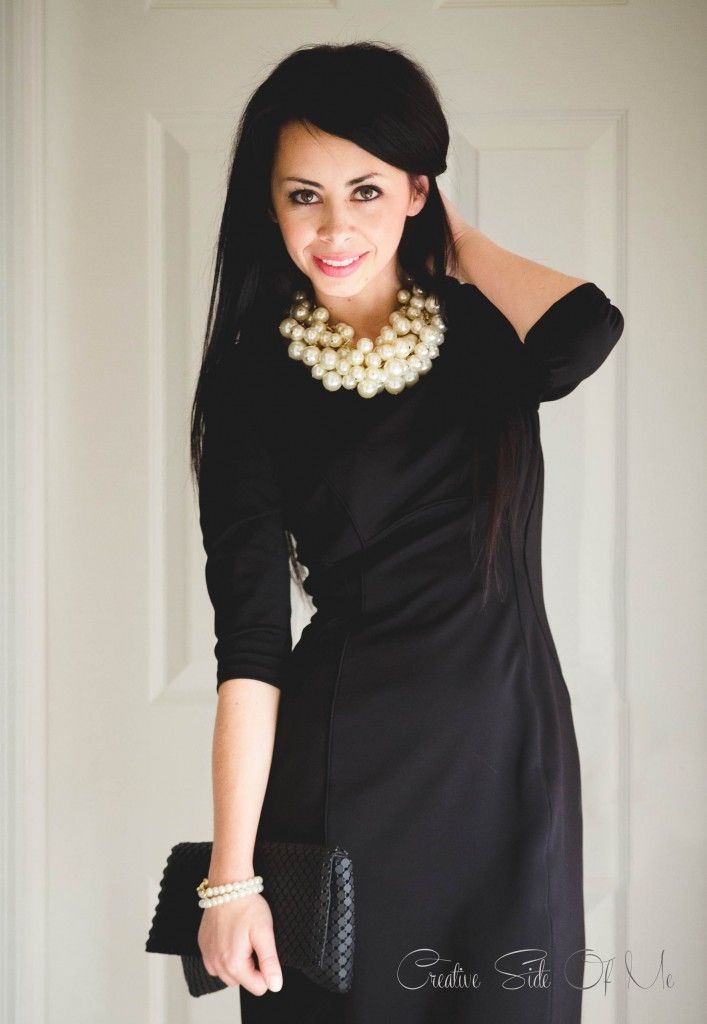 Черное платье с жемчужинами