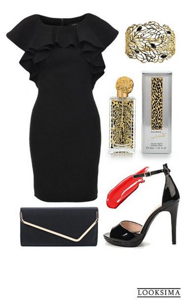 Черное платье и золотые аксессуары