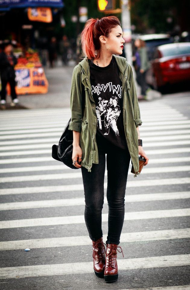 СОВЕТ: наденьте юбку из воздушного шифона, рваную футболку с затертым принтом, сверху кожаную косуху или плащ Коломбо, и закрепите образ грубыми армейскими ботинками.