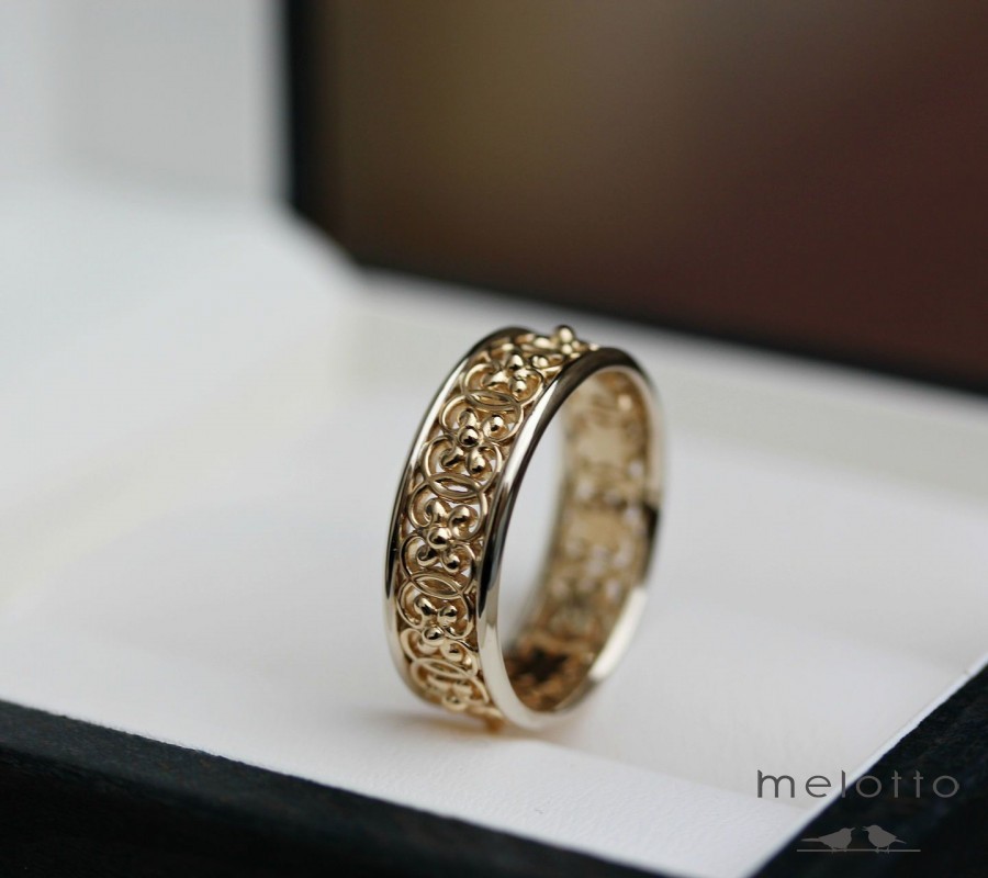 Ажурные обручальные кольца для молодоженов: золотые, серебряные (фото)