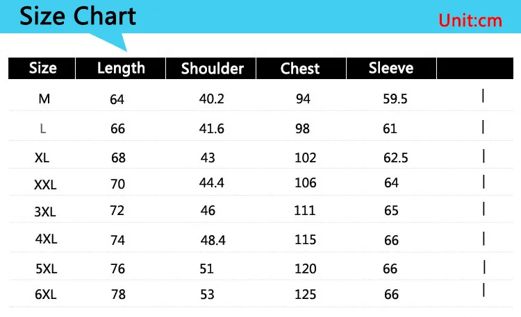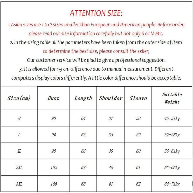 - Asia size: S M L XL XXL XXXL 4XL 5XL