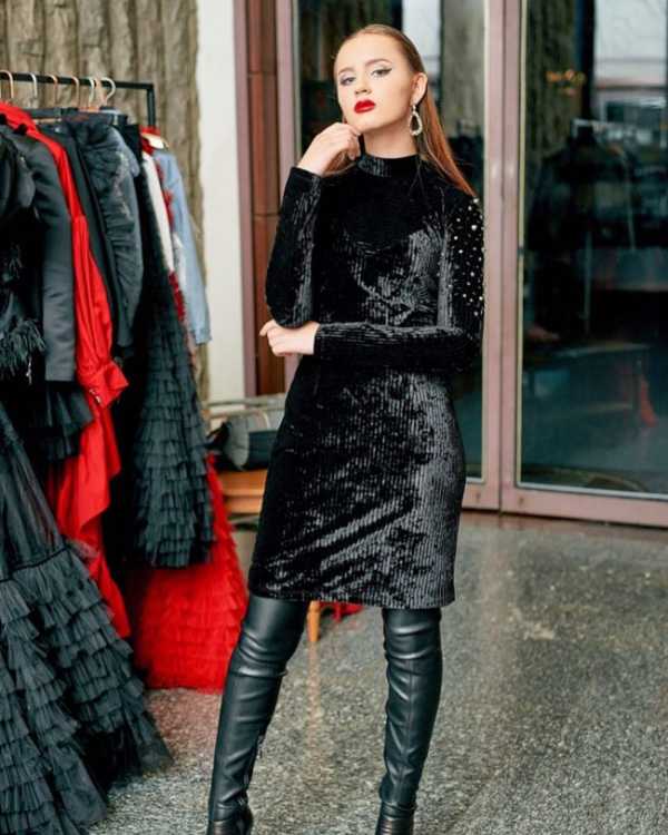 Тут вопрос возраста, фигуры и приоритетов. Молодым стройным девушкам подойдет любая длина. Естественно, никаких дефектов на ногах бархат не приемлет. На статных женщинах хорошо сидят платья любой длины. А вот невысоким дамам следует остерегаться миди – это коварная длина, которая может визуально укоротить ноги. С грубой обувью ее лучше не носить.