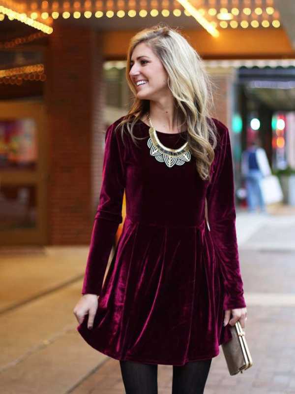 Винные оттенки всегда привлекали внимание противоположного пола. Их разнообразие можно компоновать между собой. Один из самых модных цветов сезона – бордо – отличается глубиной, подчеркивает достоинства любой фигуры. Бордовый бархат придаст женственности и элегантности хозяйке. Это палитра для более взрослых женщин, самодостаточных и уверенных в себе. Ее выбирают не многие, это зависит от силы характера барышни. Такая гамма довольно избирательно относится к аксессуарам и дополнительным элементам. Лучше подобрать платье простого кроя, так как тон сам по себе выглядит дорого, но идет не всем представительницам прекрасного пола.