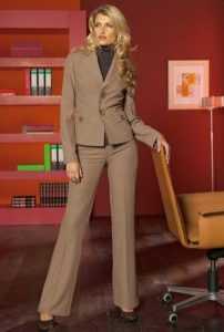 Можно создать теплый комплект, добавив несколько светлых нот. Некоторые посчитают комбинацию бледной, но правильные акценты сможет расставить макияж, аксессуары. Комплекты с белыми, коричневыми оттенками шикарно выглядят в рабочих костюмах.