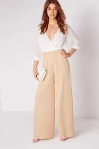 Для офиса стоит выбрать однотонный низ, дополнить его легкой блузой и стильными лодочками нюдового оттенка. Для вечеринки стоит одеть под бежевые брюки кофточку с цветочным принтом, босоножки на танкетке, сандалии.