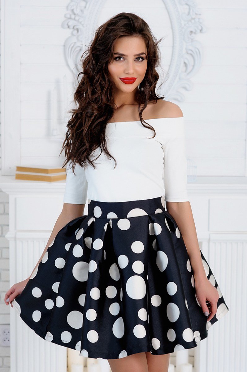 Пышная юбка с принтом: с чем носить?