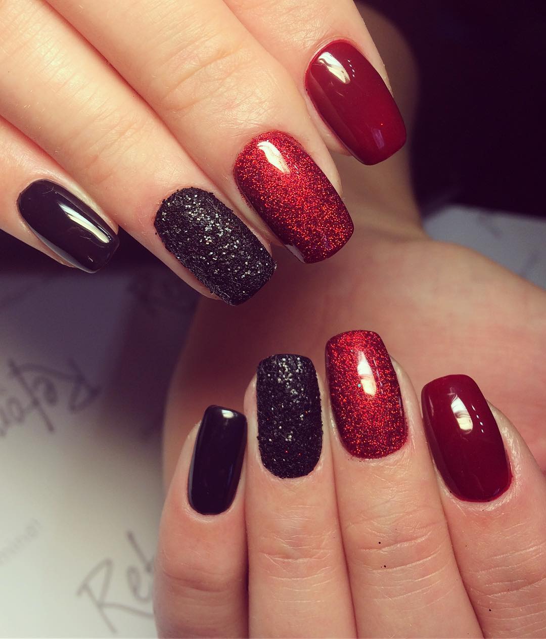 @sinney24. Темно-красные глянцевые и зернистые матовые ногти.