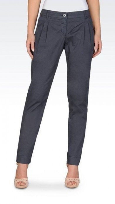 И, последнее, в особом почете у стилистов сужающиеся по длине штанин брюки с защипами. Внизу у них может быть отворот или своеобразная «гармошка». Такие модели приобретать следует только высоким дамам и только после предварительной примерки, ведь именно такой покрой значительно уменьшает рост и «растягивает» силуэт, в особенности в области бедер.
