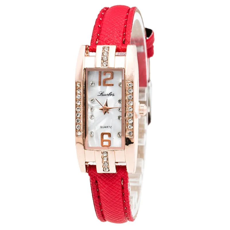 Часы женские Lecopike наручные кварцевые с красным ремешком.