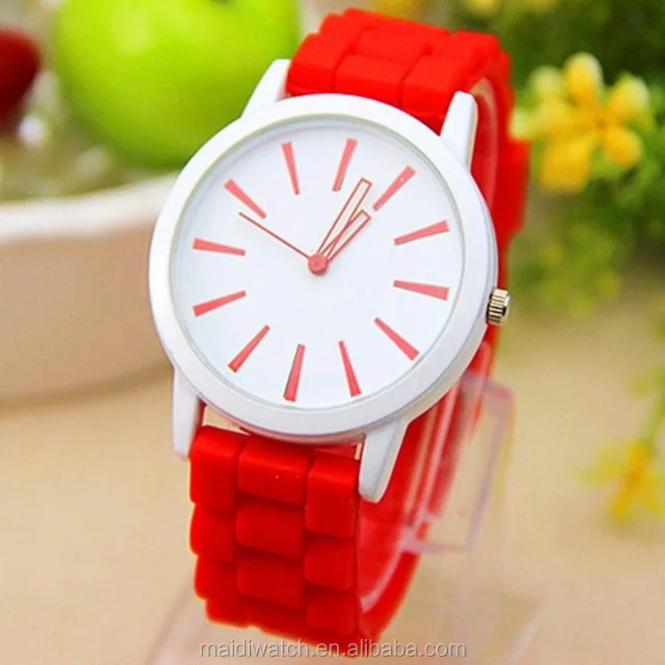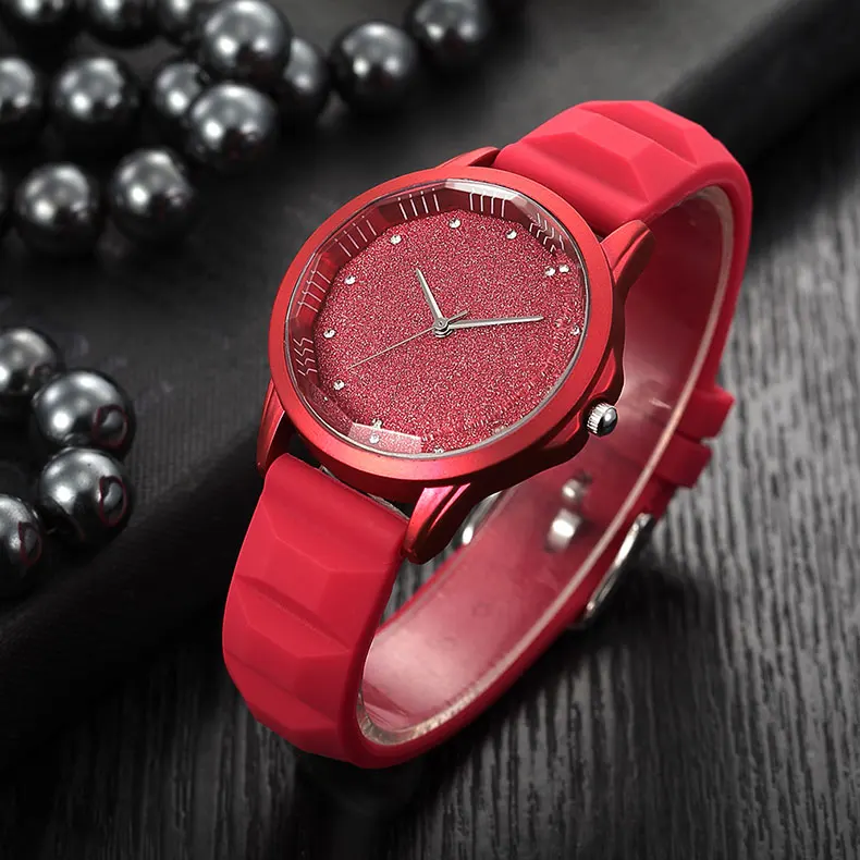 Прикольные часы с каучуковым ремешком, Часы женские классические красные