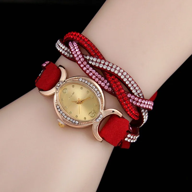 Привлекательные часы намотка длинный ремешок красный с декором ключик