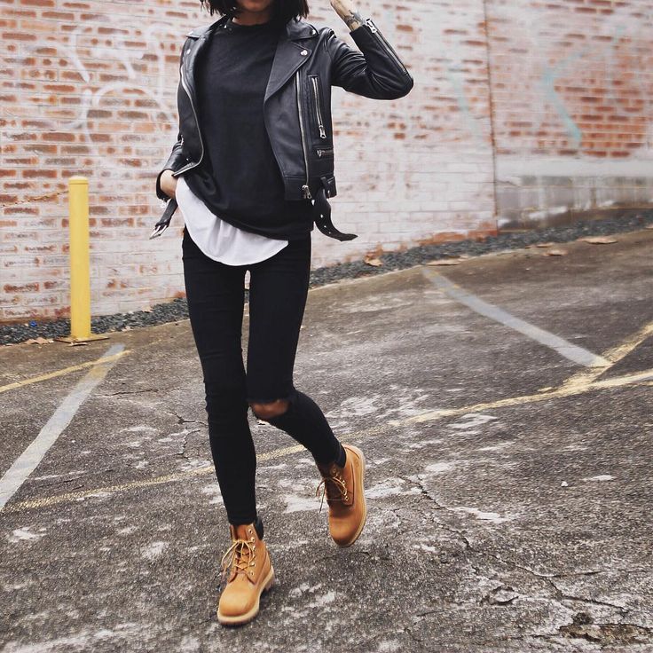 5. Черные джинсы + кожаная куртка