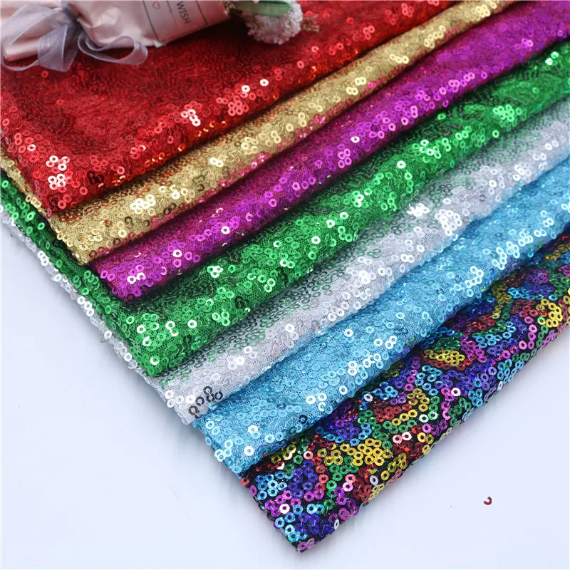 Некоторые ткани с блестками могут быть изготовлены из полиэстера, но они могут быть несколько жесткими или иметь более грубую текстуру, так как блестки обычно добавляются в качестве отделки, а не встраиваются в ткань. Блестящая ткань часто используется для изготовления бантов для волос и других аксессуаров, а также в костюмах и даже коктейльных платьях.