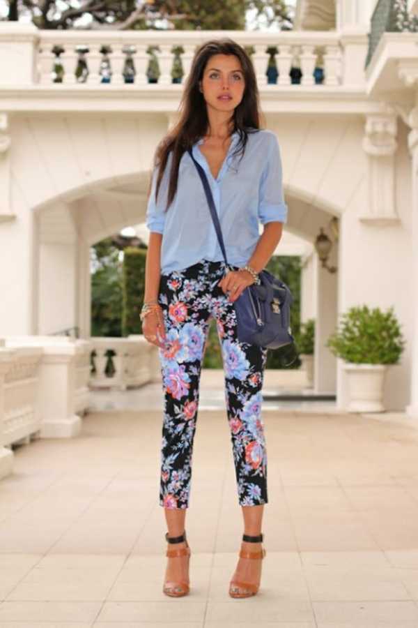 К примеру, нежная белая блуза или топ будут прекрасно сочетаться с юбкой колокол в мелкий или крупный цветочек в яркой палитре, а эффектная красная рубашка в монохромном исполнении удачно дополнит широкие полосатые брюки в черно-белом решении.