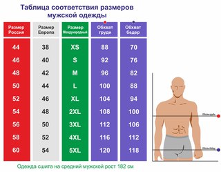| Размер | Россия | 44 | 46 | 48 | 50 | 52 |