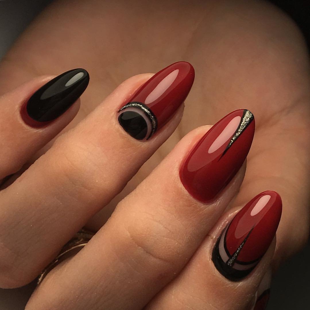 Позвольте вашим пальцам говорить с этим маникюром в стиле фанк. Для тех, кто любит экспериментировать с цветами, стилями и узорами, это идеальный маникюр. Заполните полумесяц возле кутикулы одним или двумя блочными оттенками, а кончики остальных удлините, используя обновленный стиль французского маникюра. Используйте такие оттенки, как коричневый, красный и синий, чередуя оттенки с геометрическими линиями. Этот стиль идеально подходит для любого оттенка кожи, и сейчас самое время попробовать его.