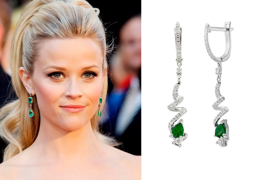 Лучше всего изумрудные серьги смотрятся с вечерними открытыми нарядами