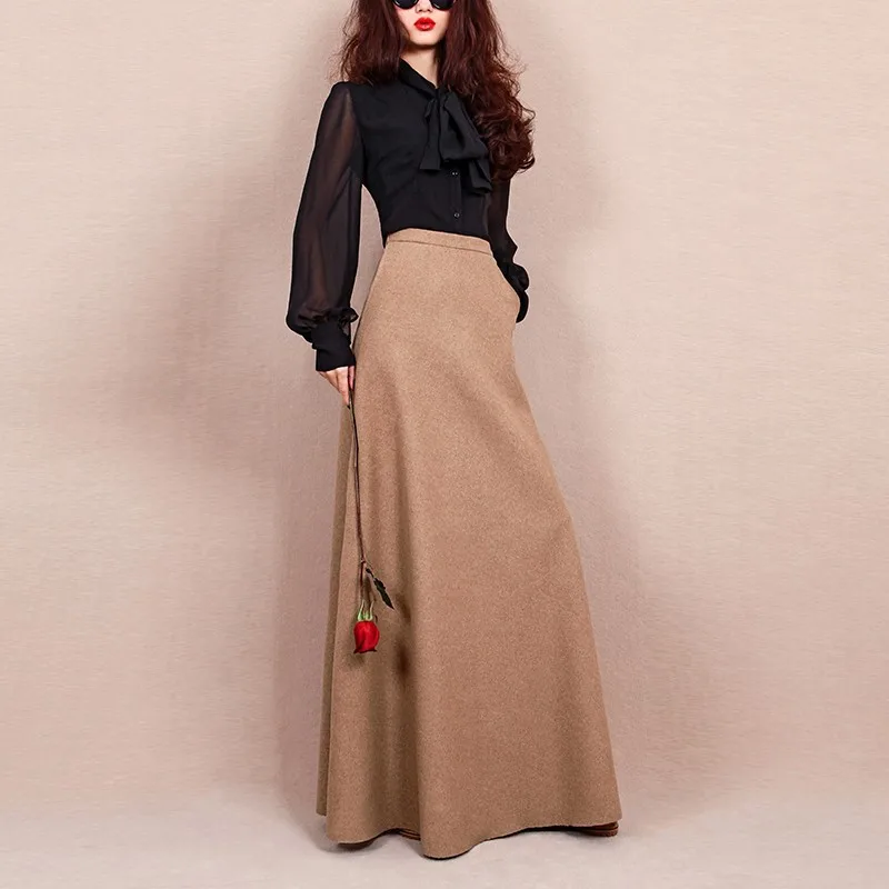 Зимние макси-юбки с карманами Женские винтажные теплые длинные юбки