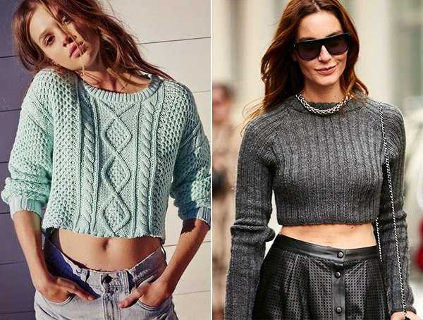 Джемпер – это вязанная одежда с круглым воротником. Фасоны могут варьироваться. Например, на фото ниже представлен женский укороченный джемпер.