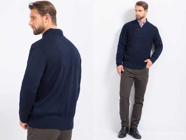 Длина мужского джемпера должна быть на 2-4 сантиметра ниже брючного ремня.