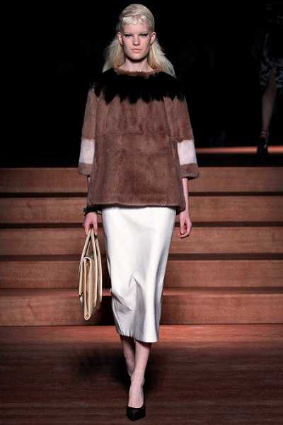 В сезоне весна-лето 2013 бренд Prada представил оригинальные меховые джемперы с принтом – длиной до линии бедра с рукавами ¾. Модель из меха длиной до середины бедра также появилась у дочерней марки Miu Miu. Необычные модели, словно сплетенные из соломы и лаковой кожи, представил бренд Rodarte.