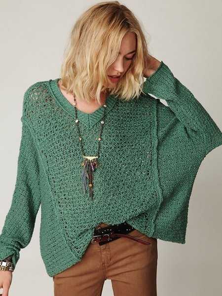 Этот вариант похож на джемпер, с одной лишь разницей – у пуловера V-образный ворот.