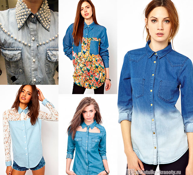 Самыми модными цветами джинсовых рубашек являются классический синий, голубой и белый.