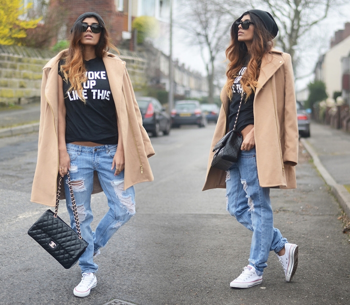 Бойфренд — это модель джинсов, это всегда потертые, иногда с дырками джинсы длиной 7/8, которые должны выглядеть так, как будто когда вы одевались, очень спешили и позаимствовали брючки у своего парня. Это выглядит неряшливо, но в то же время невероятно сексуально.