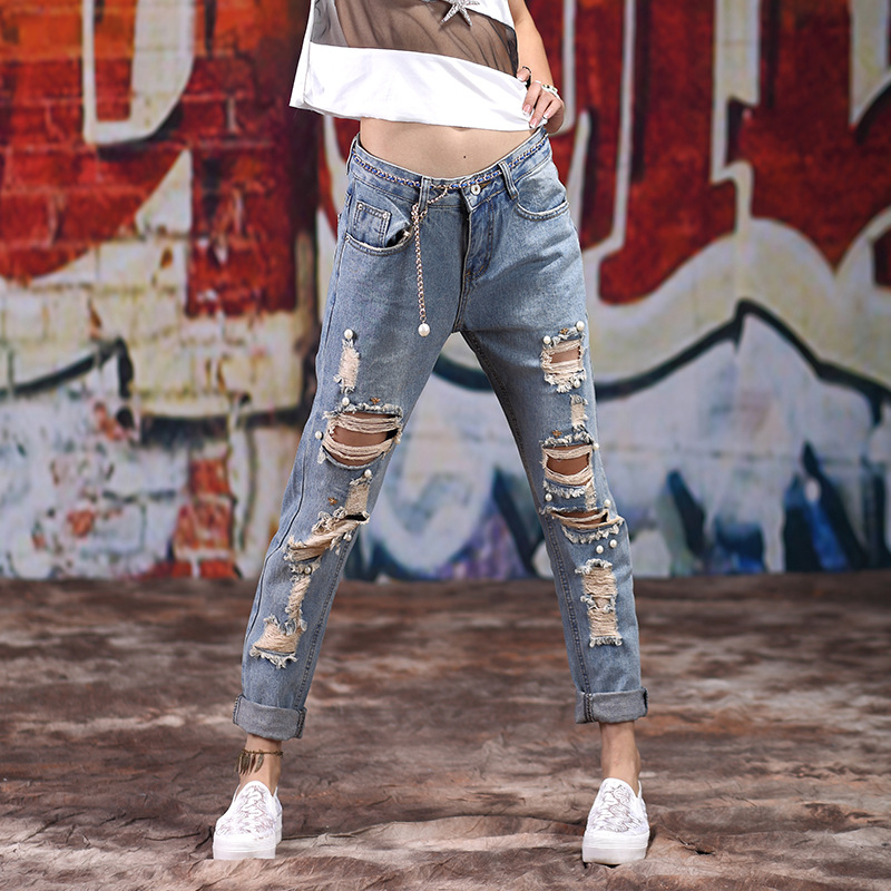 Сидеть эти гранжевые брюки должны достаточно свободно, как будто это брюки вашего бойфренда. Такие джинсы хорошо сочетаются с туниками, футболки с принтами или с обычными топами белого цвета.