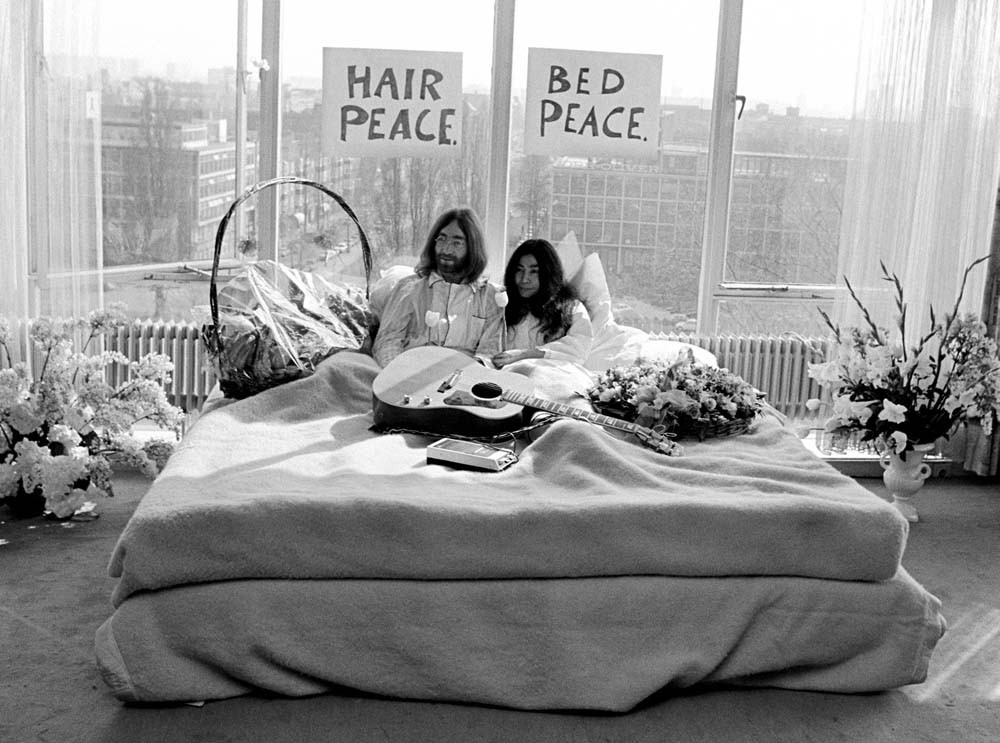 Каково было удивление журналистов, когда она застали Джона и Йоко, сидящих в постели и окруженных множеством цветов и плакатов, призывающих остановить войну во Вьетнаме. Молодожены еще семь дней оставались в постели во имя «мира во всем мире».