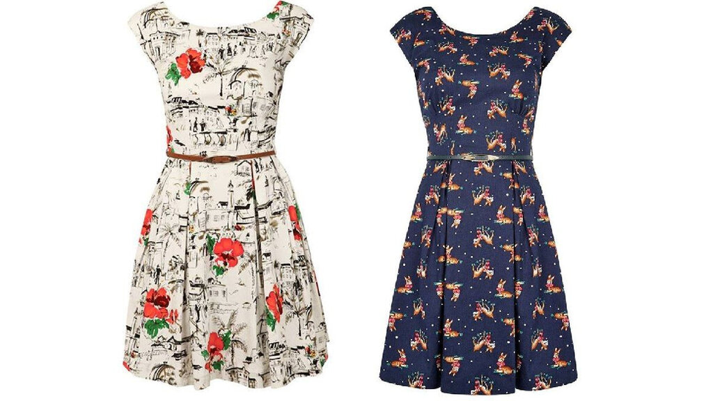 - Джинсовая ткань с набивным рисунком, шерстяные, включая «шотландку» — подойдут для тёплого зимнего платья трапеция.