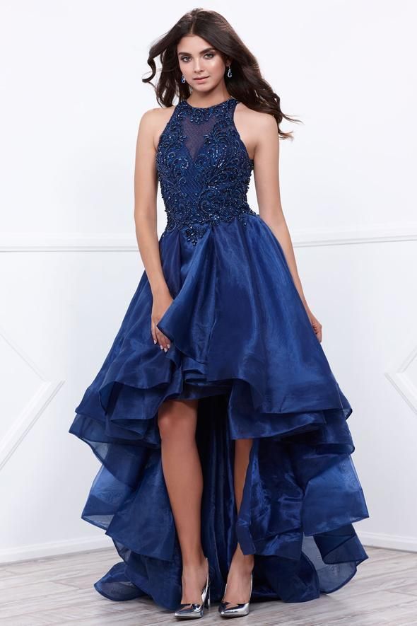 Этот тип выпускного платья никогда не выходит из моды. Это красивое платье с более коротким краем спереди по сравнению с боком или спиной.