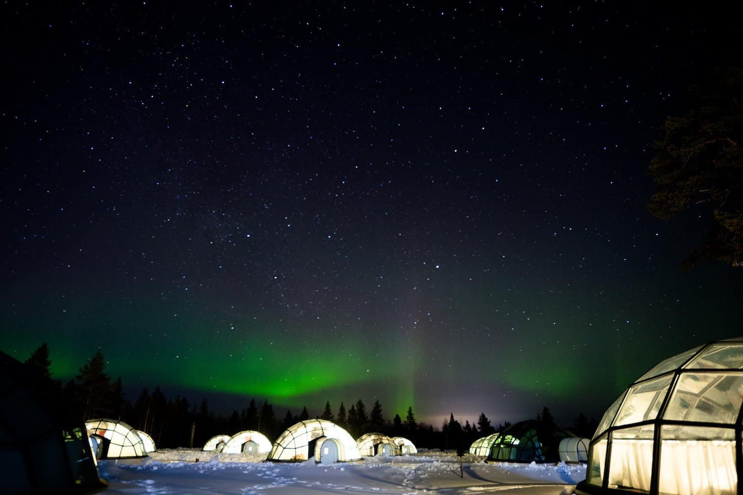 В Финляндии вы можете наблюдать за самым захватывающим световым шоу природы, Северным сиянием, из специально построенных помещений, похожих на стекло. хижины и роскошные апартаменты.