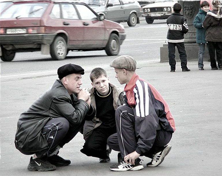 Спустя годы применять этот термин начали вообще к хулиганам, чей ореал обитания ограничен неблагополучными и бедными городскими районами, темными парадными и гаражами. Отличительными особенностями являлись три полоски (логотип «Адидаса») на спортивных штанах, глуповатый вид, привычка сидеть на корточках и характерная манера общения — подражание арго, без понимания значения некоторых слов. Кстати, сами гопники называли себя «пацанами». Этот жаргонизм обозначает мальчика или молодого мужчину «с ярко выраженной сниженной окраской». Но есть ли в России сейчас место «реальным пацанам»? Или эта неформальная группа канула в Лету вслед за бандитизмом 1990‑х и другими явлениями переходного времени? И может ли все же возродиться?