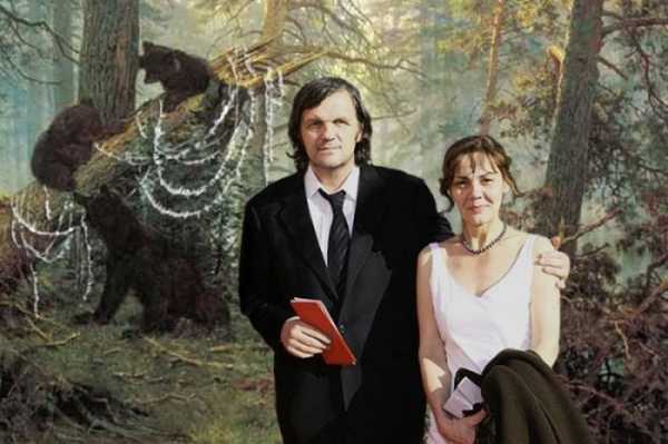 Можно убрать на этой фотке мужика в очках и поменять фон на лесной и если получится то с дождиком.